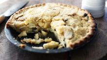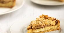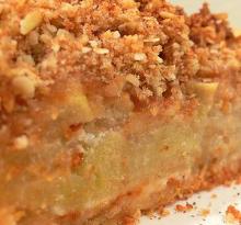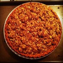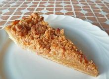 | Apple and toffee crumble pie recipe - BBC Food butter, egg yolks, custard, golden syrup, treacle, oil, almond, cinnamon, orange, apple, cream of tartar, brown sugar, sugar, ice cream, creme freche, clotted cream, flour If you can’t decide between apple crumble or apple pie this is the recipe for you. Tom’s pie has a pastry bottom, crumble top and a fruit filling laced with homemade treacle toffee which m...