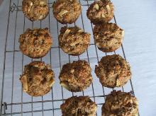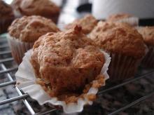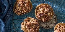 | Spiced carrot & apple muffins recipe | BBC Good Food mixed spice, bicarbonate of soda, rapeseed oil, nuts, vanilla extract, sultana, raisin, apple, carrot, eggs, honey, self raising flour, yogurt (plain) These fruity muffins are great for breakfast on-the-go or a mid-morning treat. Add dried fruit, nuts or seeds for texture, if you like STEP 1 Heat oven to 180C/160C fan/gas 4 and line a muffin tin wi...