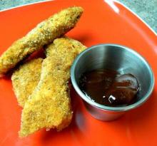 | Baked Buffalo Chicken Fingers With Curry Yogurt Dip Recipe butter, chicken breast, hot sauce, cornstarch, wheat germ, curry powder, thyme, pepper, cayenne pepper, salt, mayonnaise, bread, yogurt (plain) I made these tasty strips up for dinner yesterday to satisfy my buffalo wings craving! The curry dip is a great complement to these spicy chicken fingers! Preheat oven to 375. In a small bowl combine...