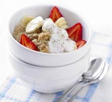 | Cinnamon porridge with banana & berries recipe | BBC Good Food oats, cinnamon, banana, strawberry, demerara, milk, yogurt (plain) Start the day in a superhealthy way with energy-boosting oats and fresh fruit, from BBC Good Food. STEP 1 In a medium-sized saucepan, mix the oats, cinnamon, sugar, milk and half the sliced bananas. ...