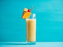 | Banana-Rum Punch Recipe | CDKitchen.com creme de banane, rum, orange juice, ice A tropical cocktail made of orange juice mixed with creme de banana liqueur and rum. Combine the ice, rum, creme de banana, and orange juice in a cocktail shaker. Place additional ice in a rocks glass...