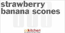| Strawberry Banana Scones Recipe | CDKitchen.com butter, banana, strawberry, eggs, salt, baking powder, sugar, flour A recipe for Strawberry Banana Scones made with bananas, strawberries, sugar, all-purpose flour, baking powder, salt, butter Preheat the oven to 400 degrees F. Mix together the bananas, strawberries a...