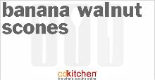 | Banana Walnut Scones Recipe | CDKitchen.com butter, egg whites, bicarbonate of soda, walnut, vanilla extract, banana, salt, baking powder, brown sugar, buttermilk, flour A recipe for Banana Walnut Scones made with all-purpose flour, brown sugar, baking powder, salt, baking soda, butter, buttermilk Preheat oven to 400 degrees F. Combine first five ingredients. Cut in b...