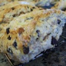 | Chocolate Chip Banana Scones Recipe | CDKitchen.com butter, bicarbonate of soda, oats, cinnamon, banana, salt, baking powder, sugar, chocolate, buttermilk, flour How can you go wrong with chocolate chip banana scones? Delicious for breakfast or afternoon tea. Preheat the oven to 425 degrees F. Grease a baking sheet. Combine the flour, oats, baking powder, cinn...