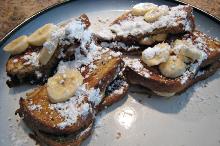 | Banana Stuffed French Toast Recipe vanilla extract, cinnamon, banana, eggs, bread, sugar, cream Banana Stuffed French Toast recipe. Ready In: 20 min. Makes 1 servings, 1424 calories per serving Ingredients: sourdough bread, cinnamon, sugar, bananas, eggs, light cream (half&half), vanilla ext...