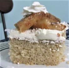| Tropical Banana Cake Recipe - Food.com butter, bicarbonate of soda, pecan, vanilla, banana, coconut, eggs, salt, baking powder, vegetable fat spread, fat, brown sugar, sugar, buttermilk, milk, flour I had some bananas sitting on the counter that needed to be baked into something, so I decided to make a cake. I didn't have any cream cheese to make a regular frosting, so I used the broiled fros...