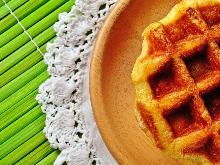 | Banana Waffles with Pecans - Breakfast Recipes butter, cornstarch, pecan, banana, eggs, salt, baking powder, maple syrup, sugar, milk, flour A lot of butter in the batter makes these waffles extra crisp. As a general rule, adding less butter to a batter results in a fluffier waffle. Preheat the oven to 350 F. Spread the pecans in a pie pla...
