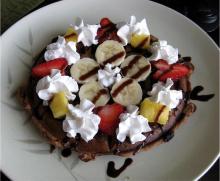 | Banana Split Waffles (Vegan) Recipe - Food.com flax seed/linseed, banana, pineapple, strawberry, salt, baking powder, vegetable fat spread, chocolate, chocolate syrup, whipped cream, soy milk, water, flour These waffles are for days when you feel like having dessert for breakfast. I like to justify them because the only non-natural sugar added is in the chocolate syrup and chips, fruit is good for you! ...