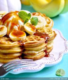 | Crisp Banana Waffles Recipe | CDKitchen.com butter, nutmeg, cinnamon, banana, eggs, salt, baking powder, sugar, milk, flour Delicious weekend brunch recipe (but easy enough for weekday breakfasts too!) In a small bowl, stir together the flour, baking powder, salt, cinnamon, nutmeg, and sugar. In another bowl, whisk togethe...
