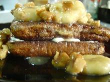 | Banana Walnut Stuffed French Toast Recipe - Food.com toast, lemon peel, oil, walnut, vanilla extract, cinnamon, banana, eggs, salt, cream cheese, bread, maple syrup, sugar, milk, half and half Make this on those special days for those special ones in your life! Cinnamon french toast is a treat with smooth creamy filling topped with a luxurious topping of walnuts and bananas. Serving Size: 1...