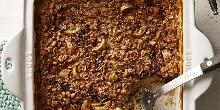 | Banana, Raisin & Walnut Baked Oatmeal Recipe | EatingWell canola oil, oats, walnut, vanilla extract, cinnamon, allspice, banana, raisin, salt, baking powder, brown sugar, milk, yogurt (plain) How do you make oatmeal even easier? Bake it! Here we combine oats with milk and yogurt and flavor them with spices. Banana and raisins add natural sweetness. Once combined, the oatmeal is baked in th...