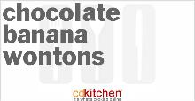 | Chocolate-Banana Wontons Recipe | CDKitchen.com won ton, butter flavoring, banana, sugar, chocolate A recipe for Chocolate-Banana Wontons made with cooking spray, banana, miniature chocolate chips, wonton wrappers, powdered Preheat oven to 350 degrees F. Coat a large baking sheet with cooking spray....