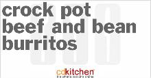 | Crock Pot Beef And Bean Burritos Recipe | CDKitchen.com beef-london broil, refried beans, cooking spray, green chili, onion, tomato, white vinegar, taco seasoning, monterey jack cheese, tortilla, sour cream A 5-star recipe for Beef And Bean Burritos made in the crock pot made with London broil, taco seasoning mix, non-stick cooking spray, onion, white vinegar, green Trim fat from meat; rub seasoning mix ...