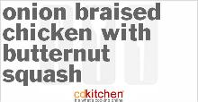 | Braised Chicken With Onions And Butternut Squash Recipe | CDKitchen.com chicken, chicken stock, olive oil, pepper, parsley, nutmeg, butternut squash, onion, garlic, salt A recipe for Braised Chicken With Onions And Butternut Squash made with olive oil, chicken pieces, salt, black pepper, onions, garlic, chicken broth, butternut Heat the oil in a Dutch oven or other he...
