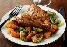| Maple Dijon Chicken with Brussels Sprouts and Butternut Squash | Diabetic Recipe - Diabetic Gourmet butter, chicken thigh, chicken drumstick, chicken stock, olive oil, pepper, butternut squash, brussels sprout, mustard, salt, maple syrup Recipe for Maple Dijon Chicken with Brussels Sprouts and Butternut Squash from the diabetic recipe archive at Diabetic Gourmet Magazine with nutritional info for diabetes meal planning. Content Contin...
