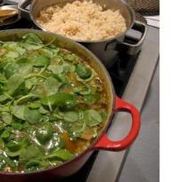 | Dairy-free Butternut Squash Soup with Chicken, Shallots and Cider Recipe by Abbys.Table | ifood.tv chicken thigh, chicken breast, rice flour, chicken stock, olive oil, almond, curry powder, pepper, butternut squash, shallot, kale, apple cider vinegar, salt, apple cider, lemon juice, lime juice, water Heat 1 teaspoon oil in a Dutch oven over medium-high heat. Add shallots; saute 5 minutes or until tender and golden brown. Add curry powder; saute 1 minute. Spoon shallot mixture into a large bowl. P...