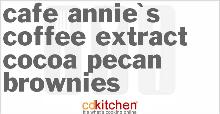 | Cafe Annie's Coffee Extract Cocoa Pecan Brownies Recipe | CDKitchen.com butter, walnut, pecan, vanilla extract, cinnamon, eggs, salt, sugar, cocoa powder, coffee, flour A recipe for Cafe Annie's Coffee Extract Cocoa Pecan Brownies made with butter, sugar, salt, vanilla extract, coffee extract, cinnamon, eggs, cocoa powder Preheat oven to 325 degrees F. Combine th...