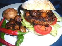 | Fully loaded Cajun chicken burgers recipe | BBC Good Food chicken breast, ciabatta, olive oil, paprika, coriander seed, cumin, avocado, spinach, bacon, mayonnaise, cheese Grilled Cajun-spiced chicken breasts topped with bacon, avocado and cheese... set to become a Friday night favourite, from BBC Good Food. STEP 1 Mix the seasoning ingredients together with a good gri...