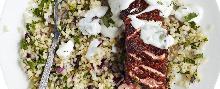 | Cajun salmon with herb bulgar wheat and yogurt dressing recipe | olivemagazine bulgur wheat, red onion, olive oil, mint, dill, coriander, lime, salmon, cajun seasoning, yogurt (plain) The best salmon recipe for one. Served with a bulgar wheat and fresh herbs then drizzled with a lime-yoghurt dressing for a quick and healthy idea for midweek. STEP 1 Mix half the lime juice, the lim...