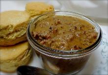 | Southern Cajun Sausage Gravy Recipe - Food.com buttermilk cookie/biscuit, chicken stock, thyme, pepper, sausage, salt, milk, flour This recipe uses a spicy sausage with a good dose of fresh thyme to add a Cajun accent to it. Serving Size: 1 (201) g Servings Per Recipe: 6 AMT. PER SERVING % DAILY VALUE Calories: 418.2 Calories...