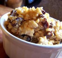| Baked Cranberry Pudding Recipe by Canadian.Recipes | ifood.tv butter, orange peel, almond, vanilla, nutmeg, raisin, cranberry, eggs, salt, baking powder, corn syrup, sugar, icing, brandy, orange juice, milk, flour In bowl, combine 1/3 cup (75 mL) of the sugar, brandy, orange rind and juice; mix in cranberries and raisins. Let stand, stirring occasionally, for 2 hours. Grease 6 cup (1.5 L) deep ovenproof puddi...