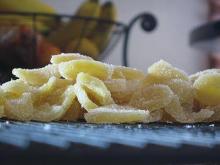 | Crystallized Candied Ginger Recipe - Chinese.Food.com ginger root, sugar, water Candied ginger is delicious served as a sweet snack with tea, as a garnish, or mixed into a variety of baked goods or pastries! Be sure the ginger root is very fresh: unblemished, smooth light brown a...