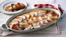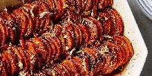 Candied Sweets Recipe butter, sweet potato, salt, brown sugar, marshmallow A recipe for the holidays. Cut 6 medium sweet potatoes, cooked and peeled, in 1/2-inch slices. Layer potatoes in buttered 1 1/2-quart casserole with 3/4 cup brown sugar, 1 teaspoon salt, and 14 cup b...