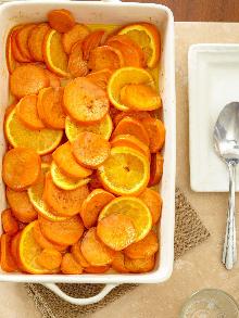 | Candied Orange Sweet Potatoes butter, vanilla, nutmeg, orange, sweet potato, sugar, orange juice Brighten up candied sweet potatoes with a hint of citrus. This orange sweet potato recipe is one side dish so delicious that it might just steal the show from the entree. Preheat oven to 400 F. Layer ...
