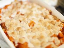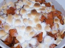 | Classic Candied Sweet Potatoes With Marshmallows Recipe | CDKitchen butter, sweet potato, yam, salt, brown sugar, sugar, marshmallow Brown sugar and a gloriously bronzed marshmallow topping turn the versatile sweet potato into a holiday bake that's half side dish, half dessert, and fully delicious. Peel the sweet potatoes and c...