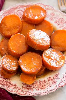 | Candied Sweet Potatoes Recipe - Food.com butter, sweet potato, brown sugar, water I haven't had these in years, but it was a staple at fall holiday dinners when I was a kid. This recipe is for a large crowd, but could easily be cut down for a regular family meal. Serving Size: ...