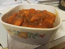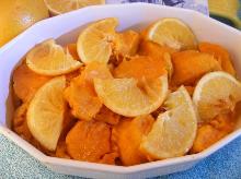 | Candied Sweet Potatoes Recipe - Food.com butter, lemon peel, paprika, ginger root, sweet potato, salt, maple syrup, brown sugar, lemon juice Our holiday favourite Serving Size: 1 (144) g Servings Per Recipe: 6 AMT. PER SERVING % DAILY VALUE Calories: 231.9 Calories from Fat 35 g 15 % Total Fat 3.9 g 6 % Saturated Fat 2.5 g 12 % Chol...