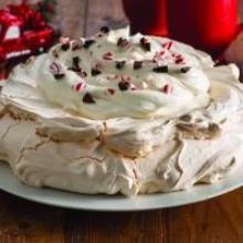 | Candy Cane Pavlova Recipe egg whites, cornstarch, white vinegar, sugar, candy, dark chocolate, whipped cream, peppermint flavoring Peppermint candy cane could be the official taste of Christmas. For added whimsy, add a sprig of holly and a bow to make this dessert look like a festive wreath. 1. Preheat oven to 300 F (150 C). Line...