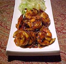 | Cantonese Spicy Shrimp With Braised Lettuce Recipe | CDKitchen.com oyster sauce, dark soy sauce, black beans, sesame seed oil, oil, white peppercorn, pepper, ginger root, onion, garlic, lettuce, shrimp, salt, tomato ketchup/catsup, brown sugar, water This Cantonese shrimp dish is more authentic than most take-out. Shrimp cooked with onions and oyster sauce join crunchy, sesame-drizzled lettuce for a plate of contrasting colors, flavors, and textur...
