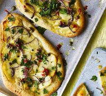 | Halloumi pizzettes with caper and chilli dressing | olivemagazine red onion, ciabatta, olive oil, parsley, red chili, caper, garlic These mini-pizzas are seriously moreish, and this recipe feeds 4 for just £3.60. For an even quicker meal, serve fried slices of halloumi with the dressing spooned over with some warm pitta bread...