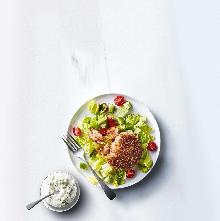 Salmon Cakes With Caper Mayonnaise Recipe | Real Simple olive oil, pepper, parsley, caper, tomato, cucumber, lettuce, salmon, salt, mayonnaise, panko bread crumbs Get the recipe for Salmon Cakes With Caper Mayonnaise. Instructions Checklist Step 1 Preheat oven to 425 F. Place salmon skin side down on a rimmed baking sheet, season with salt and pepper, and bak...