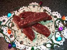 | Walnut Cappuccino Biscotti Recipe - Food.com bicarbonate of soda, olive oil, walnut, eggs, brown sugar, sugar, cocoa powder, coffee, milk, flour Recipe courtesy of the California Walnut Commission. If you want to go all out use Recipe #91909. These are wonderful on the Christmas cookie trays or anytime you just want a delicious cookie! Serving...