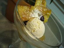 | Warm Caramel Banana Ice Cream Sauce Recipe butter, banana, vegetable fat spread, brown sugar, sour cream The first time I made this, I was afraid that the sour cream might give a little too much tang to the sauce. But it didn't! This is a delicious quick dessert sauce that is also wonderful spooned o...
