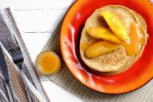 | Caramel Banana Pancakes Recipe - Food.com almond flour, bicarbonate of soda, coconut oil, vanilla extract, cinnamon, banana, coconut cream, eggs, salt, baking powder, honey, maple syrup Pancakes are typically associated with unhealthy eating, but the reality is that this doesn’t have to be the case. This recipe is still delightfully sweet and delicious without all the negat...