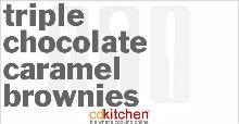 | Triple Chocolate Caramel Brownies Recipe | CDKitchen.com butter, evaporated milk, caramel, bicarbonate of soda, oil, pecan, vanilla extract, eggs, sugar, dark chocolate, milk chocolate, chocolate, water, flour A 5-star recipe for Triple Chocolate Caramel Brownies made with all-purpose flour, baking soda, sugar, butter, water, dark chocolate bar, milk chocolate Preheat oven to 325 degrees F. In a small bowl,...
