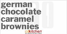 | German Chocolate Caramel Brownies - Recipe #2333 - Foodgeeks butter, evaporated milk, caramel, vegetable fat spread, chocolate cake mix, chocolate Try this recipe for German Chocolate Caramel Brownies on Foodgeeks.com Melt caramels in a double boiler oe microwave. Stir in 1/3 cup milk andset aside. In a mixing bowl, combine cake mix butter and r...