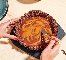 | Miso Caramel and Chocolate Tart | olivemagazine butter, wheat bran cereal, miso, hazelnut, salt, sugar, dark chocolate, milk chocolate, double cream A nutty cereal base, rich dark chocolate ganache and umami miso caramel come together in this indulgent dessert. It makes an impressive dinner party dish STEP 1 Start with the tart case. Melt togethe...