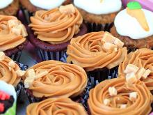 | German Chocolate Cupcakes with Caramel Icing Recipe | MyRecipes butter, evaporated milk, egg substitute, bicarbonate of soda, pecan, vanilla extract, coconut, salt, baking powder, brown sugar, sugar, chocolate, icing, water, flour These chocolate cupcakes tend to sink slightly in the middle as they cool, but the icing hides the dip. The icing will harden quickly as it cools, so you'll need to work quickly when spreading it ...