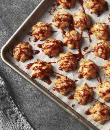 | Pumpkin Fritters With Caramel Sauce Recipe cornstarch, oil, cinnamon, pumpkin, eggs, salt, baking powder, brown sugar, self raising flour, milk, water No one can resist these! You can have it with or without the sauce. Sift dry ingredients togeher for the dough. Stirr in the pumpkin. Stirr in the eggs. Deepfry spoonfull of the dough. Drain on br...