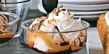 | Caramel Sundaes Recipe by laurenn | ifood.tv butter, cinnamon, banana, coconut, brown sugar, ice cream, cream Caramel Sundaes!! I love serving this sundae during my parties. A simple and quick dessert, but one that will leaving you craving for more. This dessert includes the goodness of banana...put it togeth...