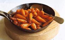 | Carrots With Caramelized Ginger Recipe - Food.com butter, parsley, ginger root, carrot, salt, honey, lemon juice Taken from April 2011 Bon Appetit: The carrots used in this recipe are true whole baby carrots, each usually about three to four inches long and about half an inch wide. Serving Size: 1 (97) g Servin...