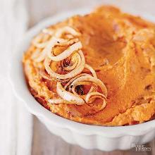 | Sweet Potato Mash With Caramelised Onions Recipe - Food.com butter, oil, pepper, sweet potato, onion, salt A little something I whipped up as a side for dinner which we all enjoyed. Serving Size: 1 (200) g Servings Per Recipe: 3 AMT. PER SERVING % DAILY VALUE Calories: 217.6 Calories from Fat 45 g 21 %...
