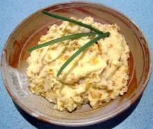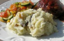 | Mashed Sweet Potatoes with Caramelized Onions butter, pepper, sweet potato, potato, onion, salt, sour cream, milk Cutting the potatoes into small cubes before boiling prevents them from becoming waterlogged and results in a fluffier mashed potato side dish. To caramelize the onions, in a large skillet heat 1/4 cu...