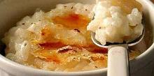 Caramelized Rice Pudding Recipe by Veggie.Lover | ifood.tv butter, egg yolks, vanilla extract, rice, sugar, milk, water 1. Place sugar and water in a small saucepan and cook over a low heat, stirring constantly, until sugar dissolves. Bring to the boil and cook, without stirring, until lightly golden. 2. Pour toffee i...