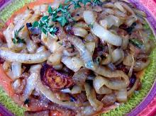 | Flavored Caramelized Onions Recipe - Food.com butter, thyme, rosemary, pepper, onion, salt, brown sugar I just love these sweet onions! I put them on grilled Portobello mushrooms, hamburgers, steaks, omelets and on grilled vegetable sandwiches. Serving Size: 1 (17) g Servings Per Recipe: 30 AMT. PER S...