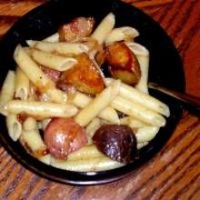 | Caramelized Onions Roasted Potatoes And Penne Recipe butter, potato, onion, garlic, salt, parmesan cheese, pasta Caramelized onions + roasted potatoes + pasta = deeeeelicious Boil water and add penne. In medium pan add 2 tablespoons butter. Once butter is melted add sliced onions and sprinkle with salt. When ...